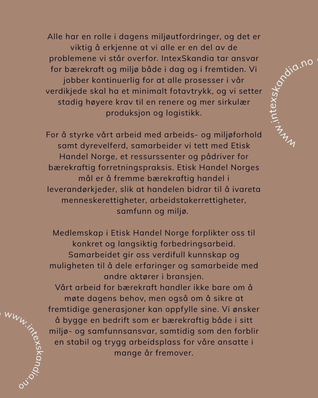 Du kan lese mer om vårt arbeide for bærekraftig forretningspraksis og hvordan vi jobber sammen med Etisk Handel Norge her.